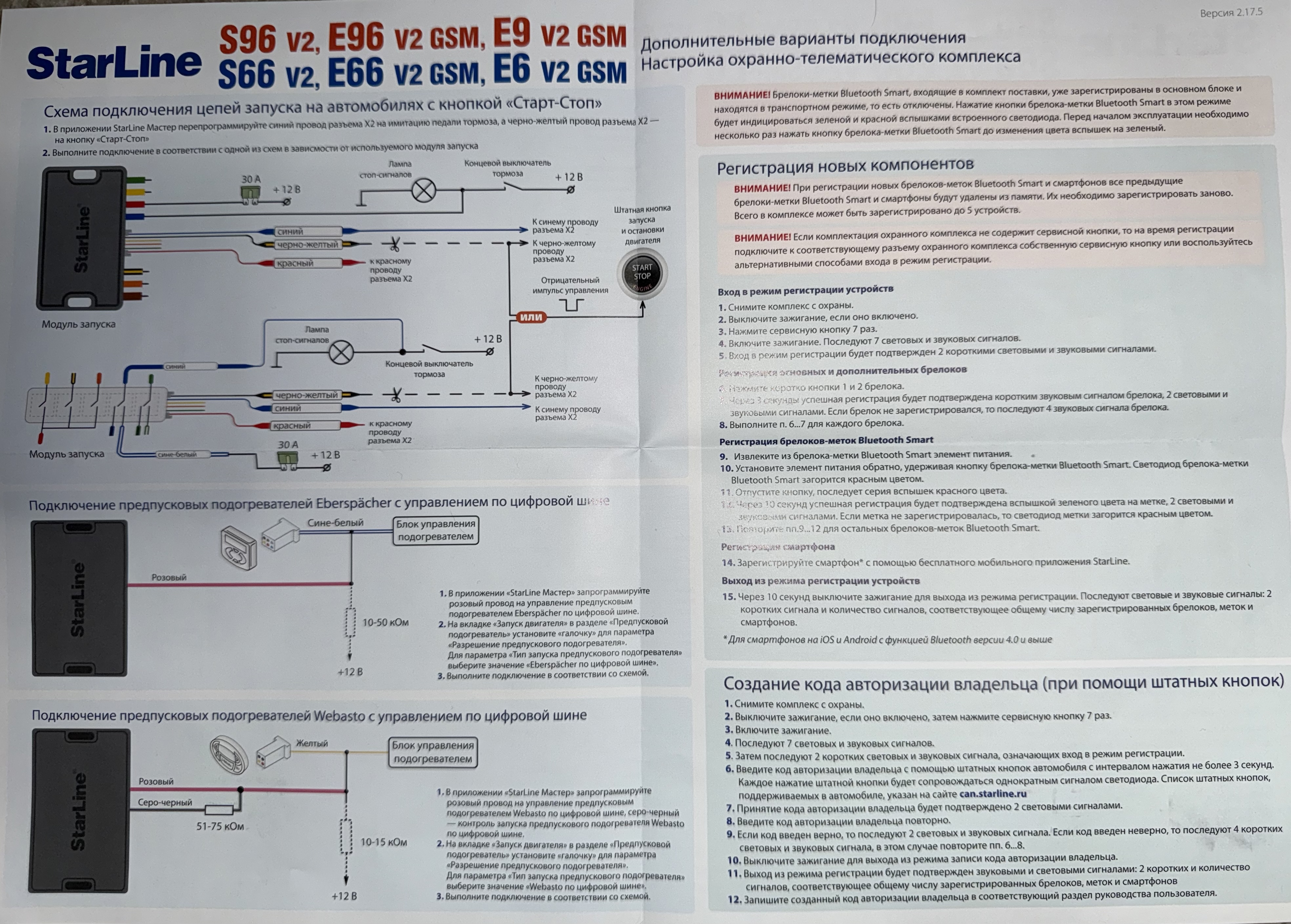 Схема подключения сигнализации StarLine S96v2, E96v2 GSMy