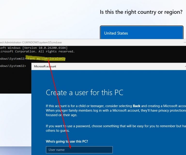 UPD от 08.10.2025 Есть информацию, что в последнем Windows 11 Insider Preview Build 26120.6772 (6 октября 2025), Microsoft заблокировала все способы создания локальных аккаунтов на экране OOBE (включая команды start ms-cxh:localonly и oobe\bypassnro). Теперь эти и другие известные способы обхода регистрации учётной записи Microsoft не работают в новых сборках Windows 11. Вероятно, это изменение в скором времени будет применено и в основной канал Windows 11 (GA)