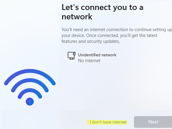 Есть вариант установки Windows 11 с локальным аккаунтом, если ваш компьютер находится в изолированном сегменте (без подключения к Интернету).