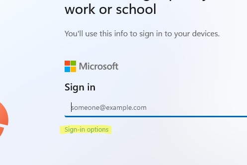 - На экране ввода учетной записи Microsoft нажмите Sign-in options, чтобы показать доступные варианты входа