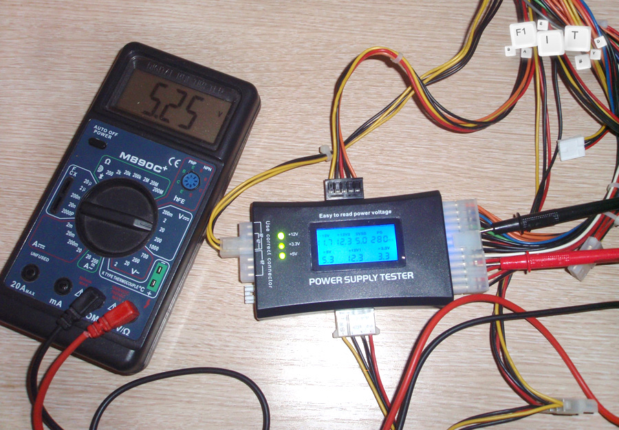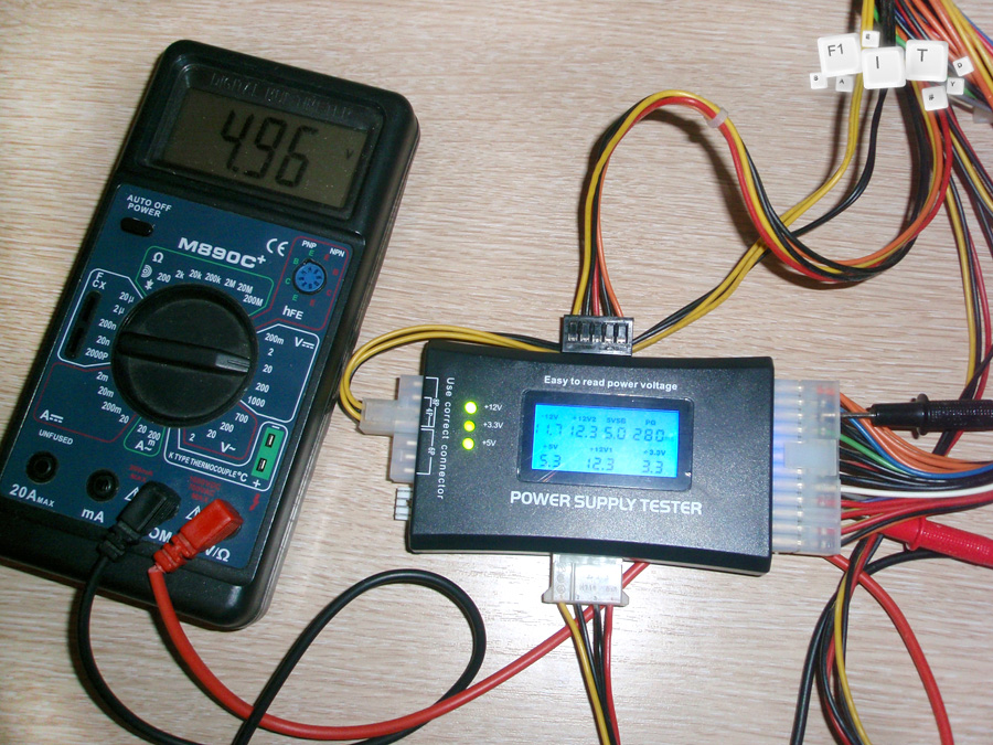 В результате проверки мультиметром всех основных показатели напряжений, расхождения составили несколько сотых вольта (простительно, так как он округляет до десятых), из чего я сделал вывод, что китайский Power Supply Tester неплох. Вот пара фотографий в качестве доказательств.